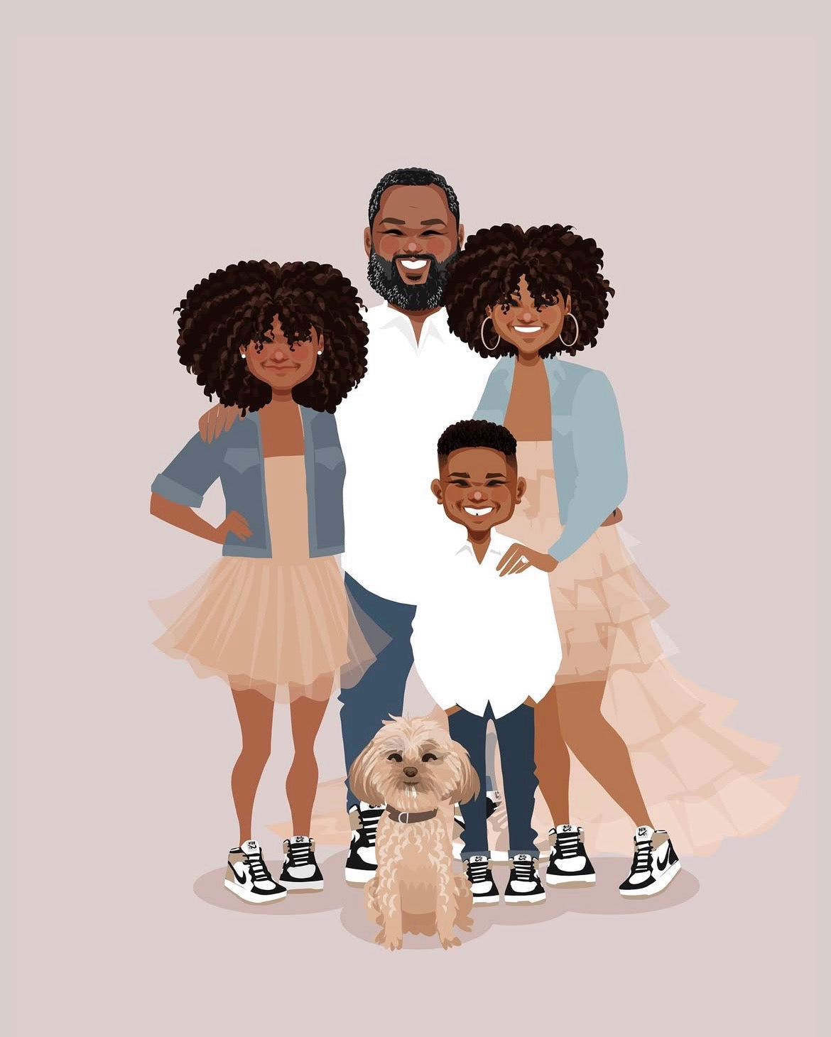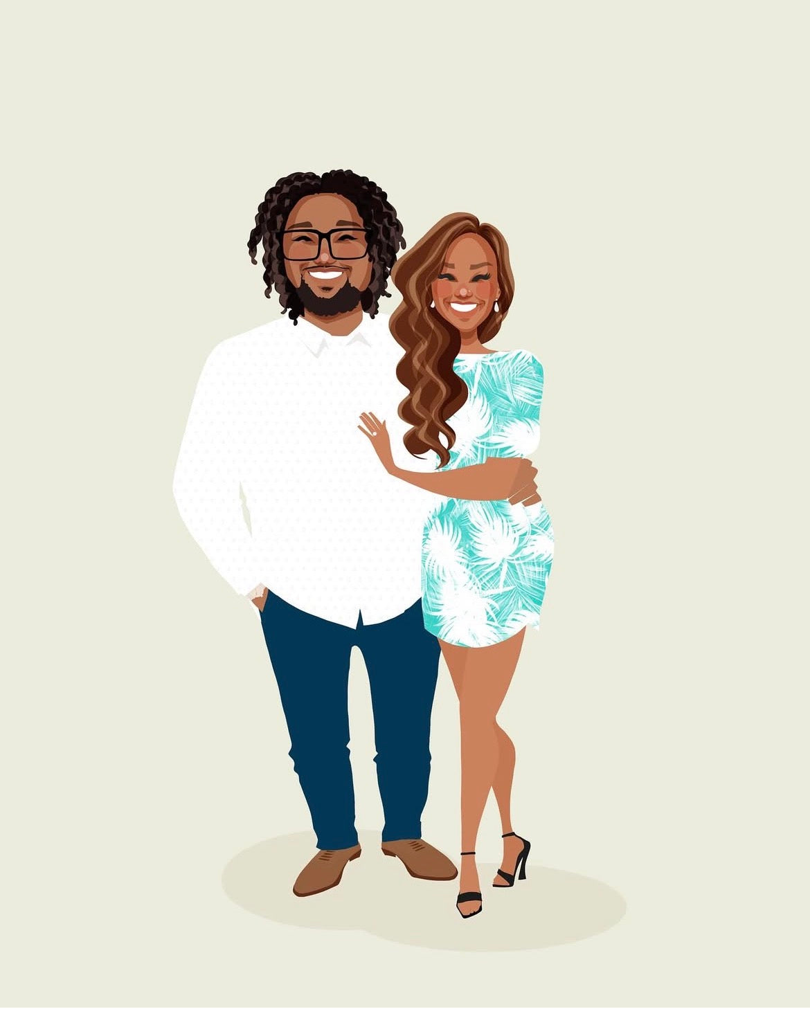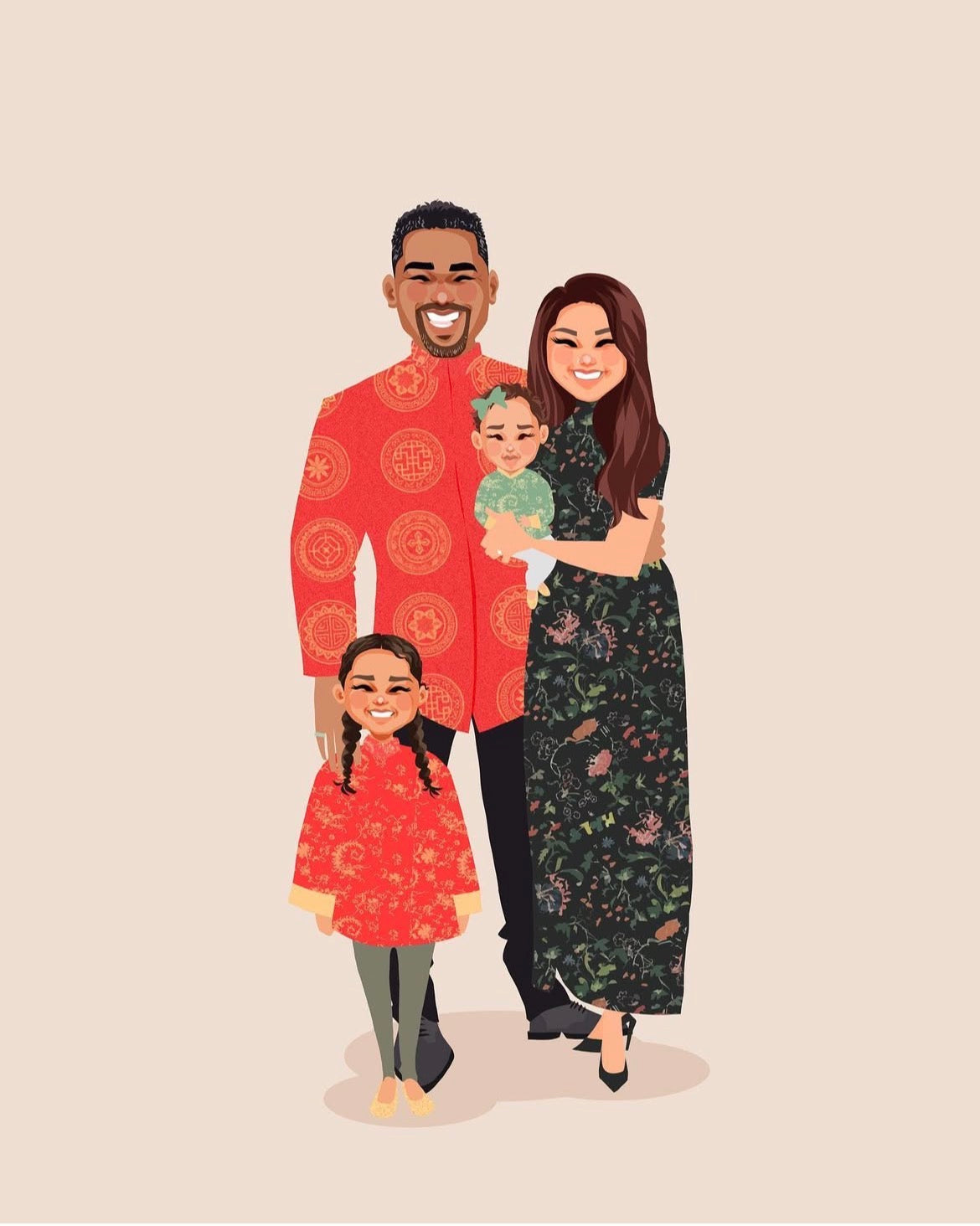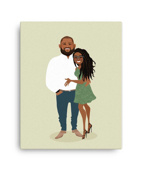 This portrait was created for Uchechi, who came back to update a previous one. The new piece includes their newborn daughter and a change in clothing, a quiet way of marking how life has moved forward.