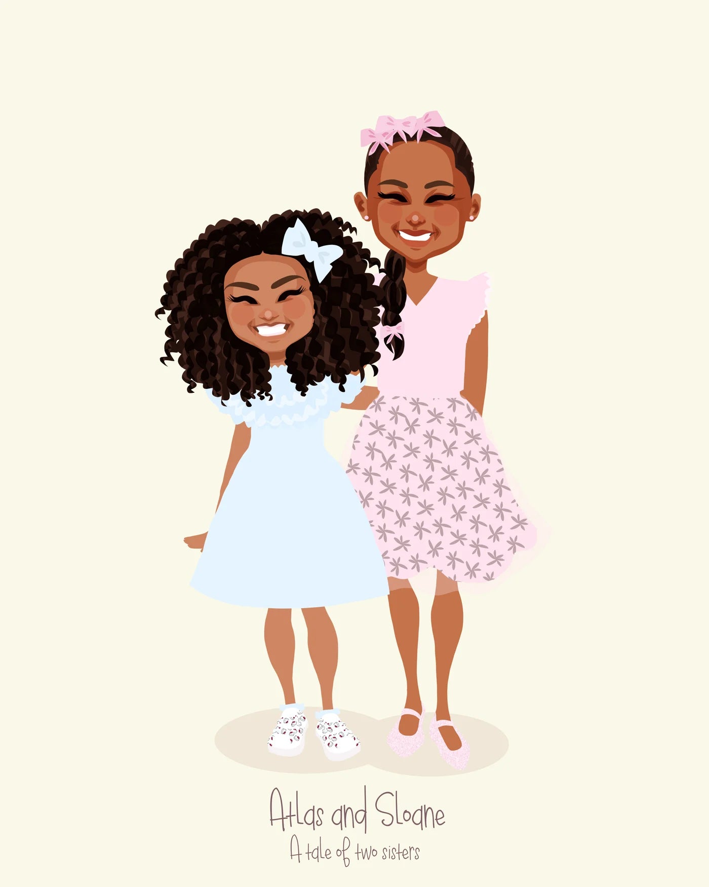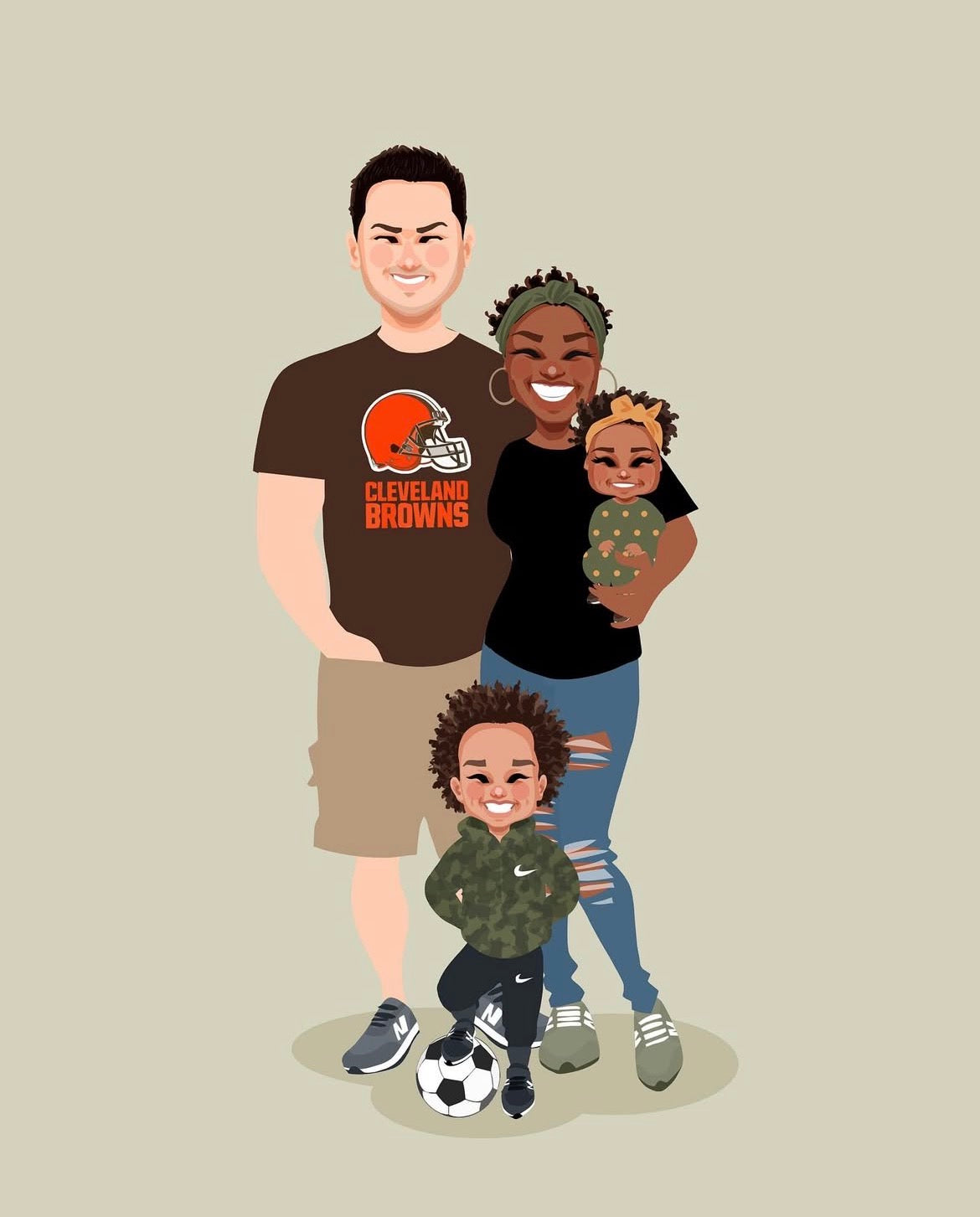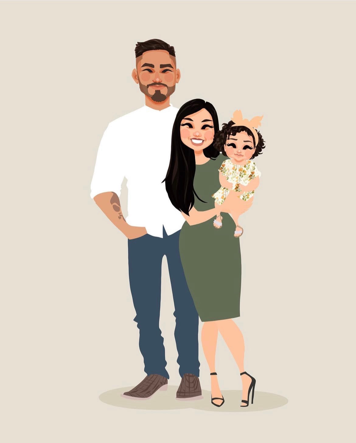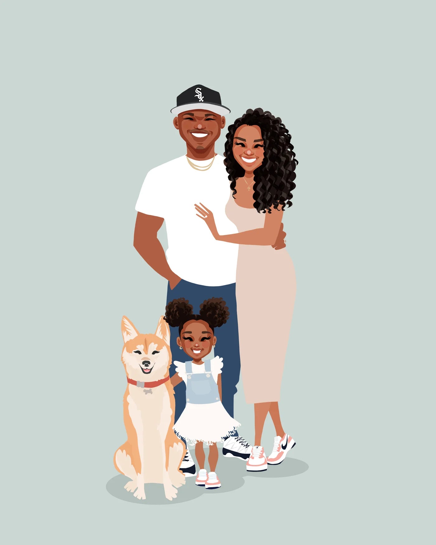 This portrait was created for Uchechi, who came back to update a previous one. The new piece includes their newborn daughter and a change in clothing, a quiet way of marking how life has moved forward.